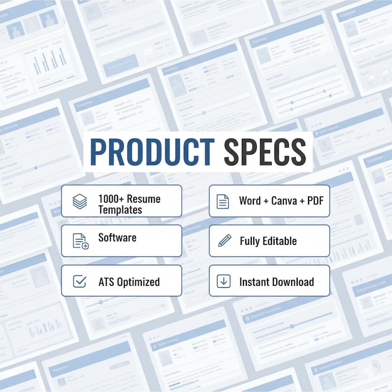 Long-Tail Buyer-Intent Keywords: 1000 resume templates download, ATS resume templates for Word, Canva resume templates bundle, professional CV templates for job applications, instant download resume pack